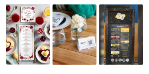 • Communication print à emporter : Cartes de visite, flyers, menus à emporter sont autant de points de contact avec vos clients une fois sortis de votre établissement.
